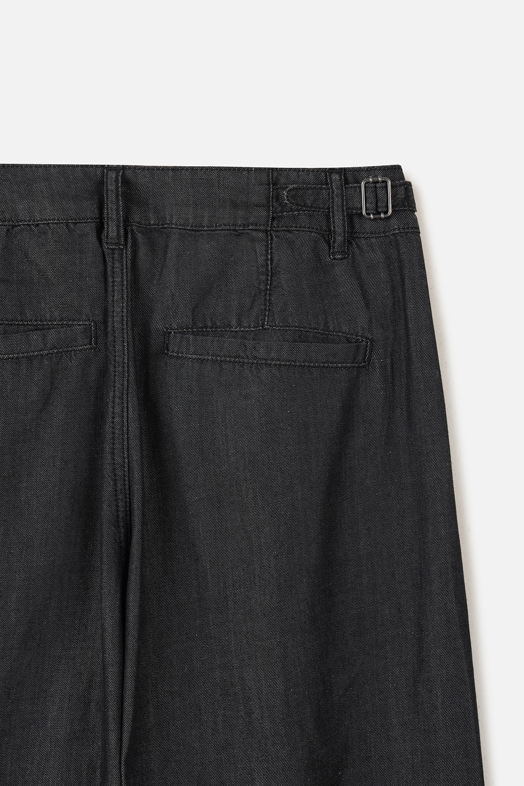 이탈리아 CANCLINI TESSILE S.P.A.의 데님 원단을 사용했습니다. CANCLINI는 이탈리아 코모 지역에서 1925년부터 100년의 역사를 가진 고품질 텍스타일 회사입니다. 코튼 35%와 레이온 65% 혼방의 데님으로, 일반적인 데님보다 부드럽고 실키한 촉감이 특징입니다. 가볍고 유연한 원단으로 제작되어 장시간 착용에도 부담이 적으며, 자연스럽게 흐르는 실루엣을 형성하도록 설계했습니다.