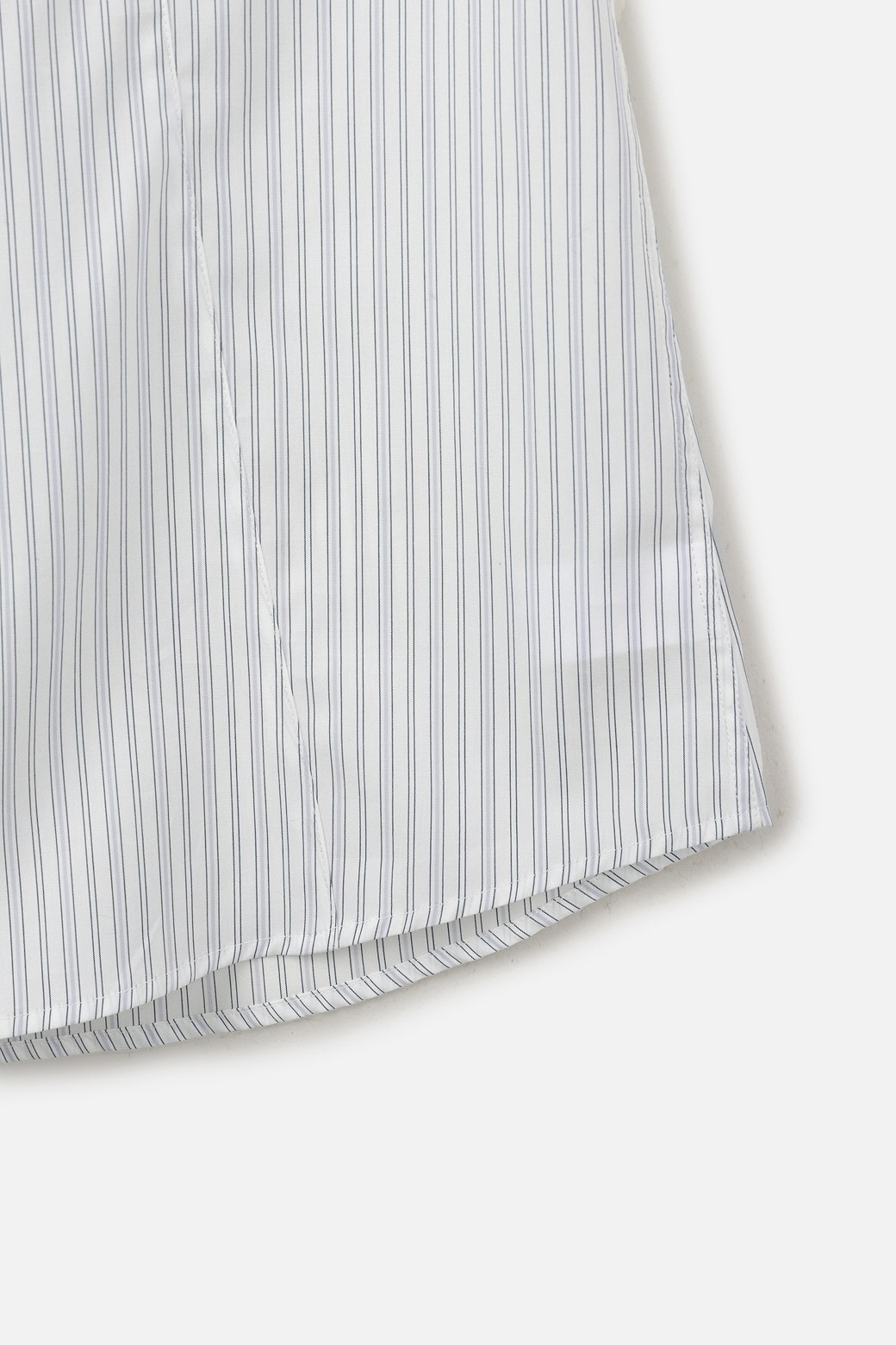 코튼 100% 원단을 사용했습니다. 60수 조직으로 가볍고 부드러운 터치감을 제공하며, 은은하게 하늘거리는 스트라이프 패턴이 특징입니다. 통기성이 우수해 더운 계절에도 쾌적한 착용감을 유지하실 수 있습니다.