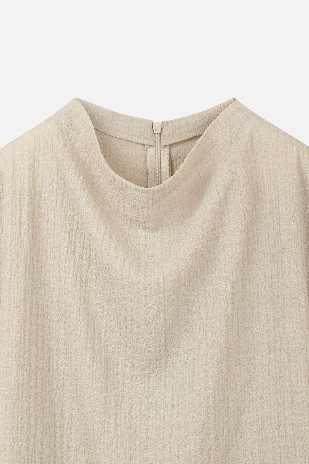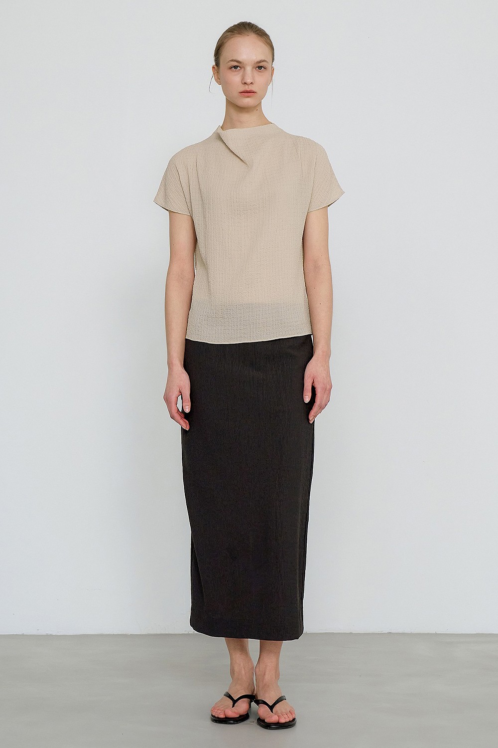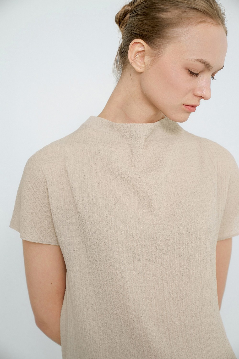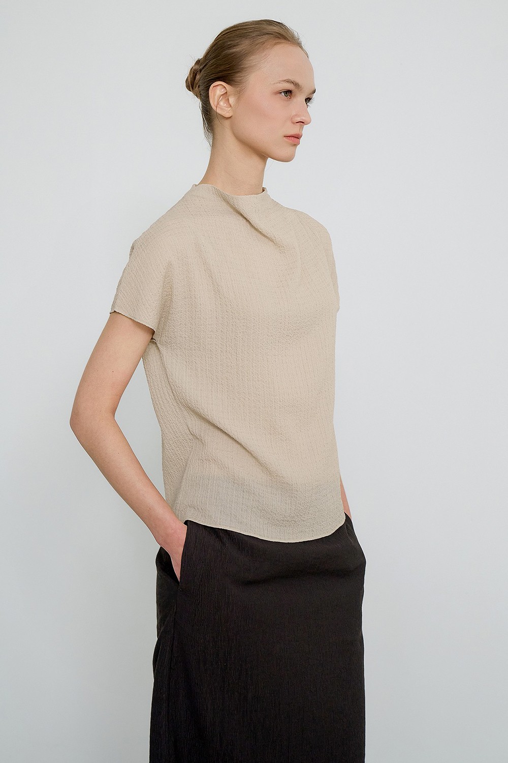 카울넥 디자인을 적용해 넥 라인을 자연스럽게 감싸도록 설계했으며, 전체적으로는 몸을 따라 부드럽게 흐르는 실루엣을 완성했습니다. 시원한 터치의 소재를 사용해 몸에 달라붙지 않아 편안하게 착용하실 수 있으며, 직장에서도 부담 없이 활용하시기 좋은 차분한 분위기를 갖췄습니다.