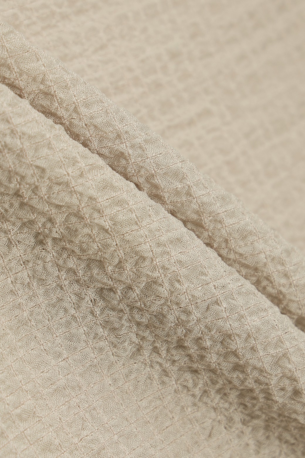 소재 가공에 특화된 일본의 기술력을 더해 제작한 소재로서, 열가공을 통해 형성된 크리즈 조직을 더했습니다. 가벼우면서도 자연스러운 조직감을 형성하며, 구김에 강한 특성으로 착용 중에도 깔끔한 외관을 유지하실 수 있습니다. 가볍고 통기성이 우수해 쾌적한 착용감을 제공합니다.