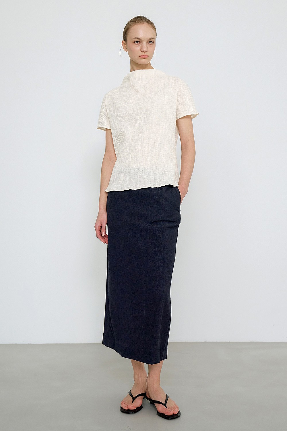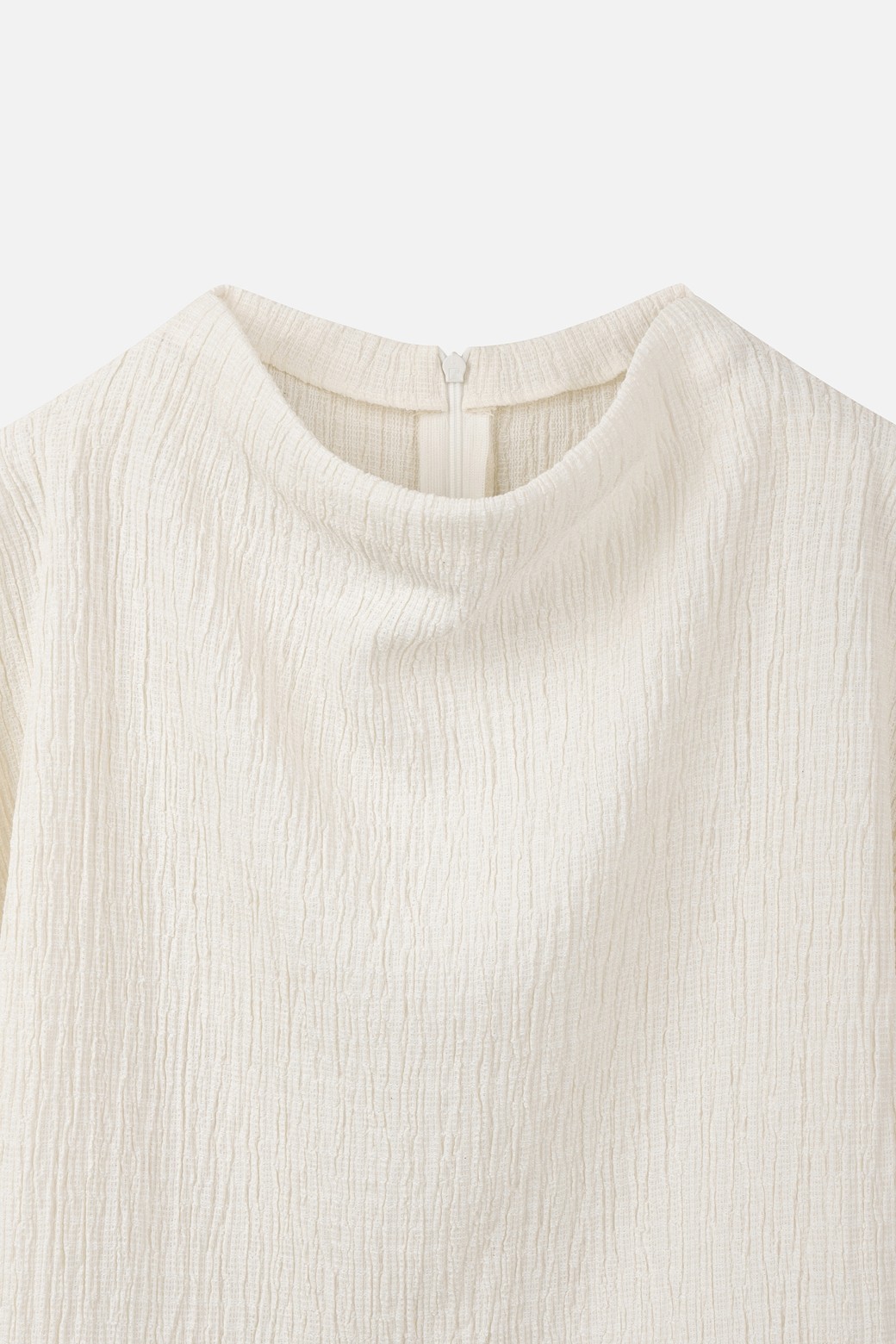 카울넥 디자인을 적용해 넥 라인을 자연스럽게 감싸도록 설계했으며, 전체적으로는 몸을 따라 부드럽게 흐르는 실루엣을 완성했습니다. 시원한 터치의 소재를 사용해 몸에 달라붙지 않아 편안하게 착용하실 수 있으며, 직장에서도 부담 없이 활용하시기 좋은 차분한 분위기를 갖췄습니다.